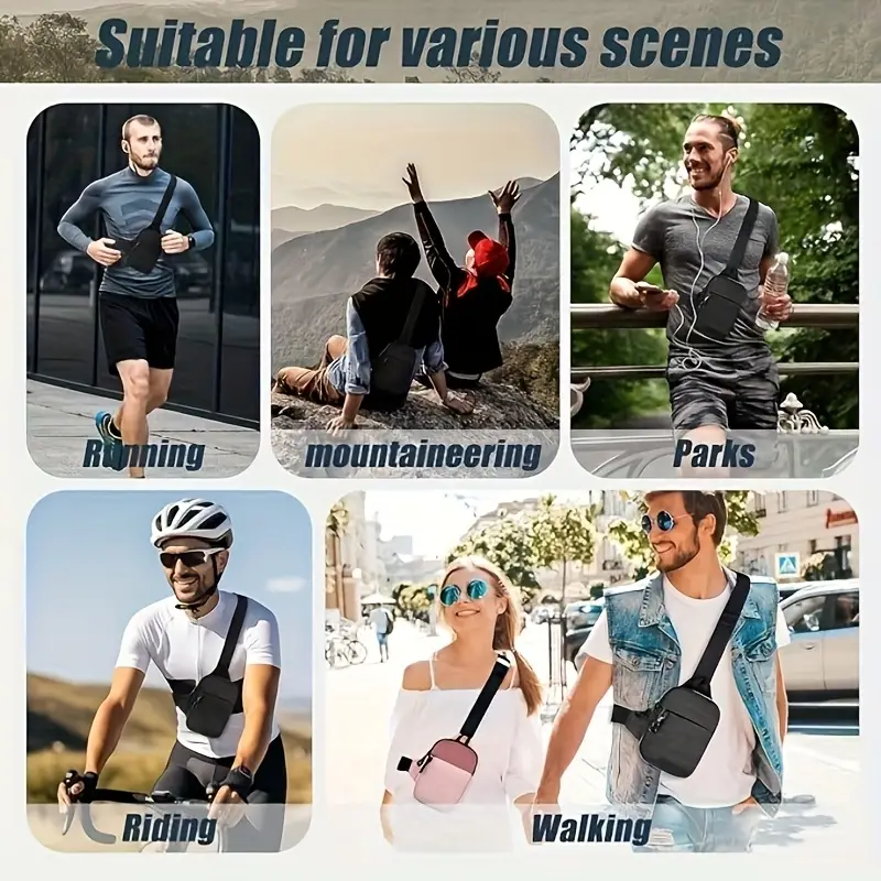 La nostra borsa pettorale ha scomparti appositamente progettati e ben organizzati per smartphone, chiavi, portafogli, cuffie e altro ancora.