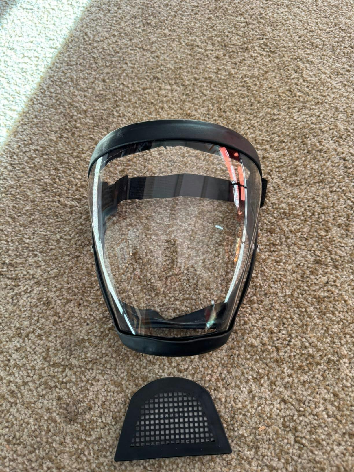 Visiera di sicurezza multifunzionale, che offre una protezione completa per viso, occhi e mento. Leggera e confortevole, adatta per ambienti industriali, edili e domestici, con resistenza agli urti superiore e protezione dalle polveri sottili.