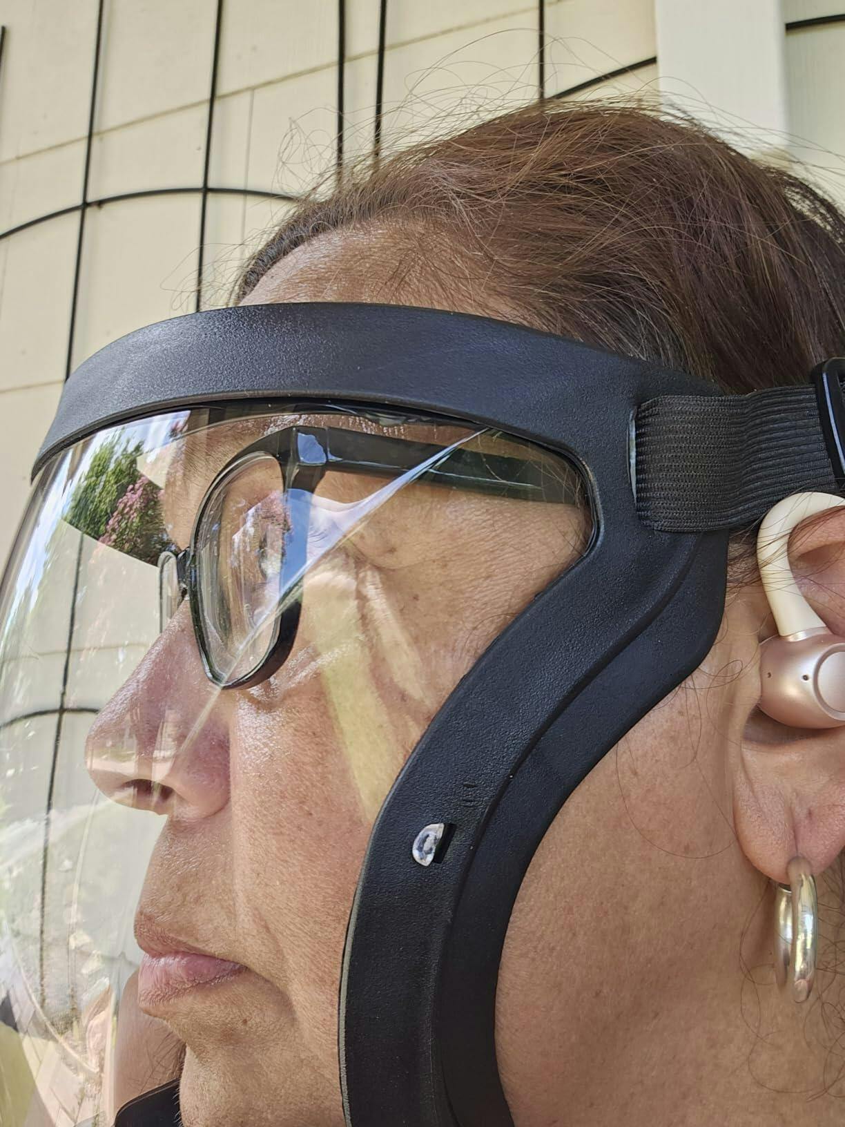La visiera è dotata di cinturini in silicone regolabili nella parte posteriore della testa, che garantiscono una vestibilità perfetta. Grazie all'ampia superficie in vetro, il prodotto è perfettamente adatto sia per gli uomini che per le donne (unisex).