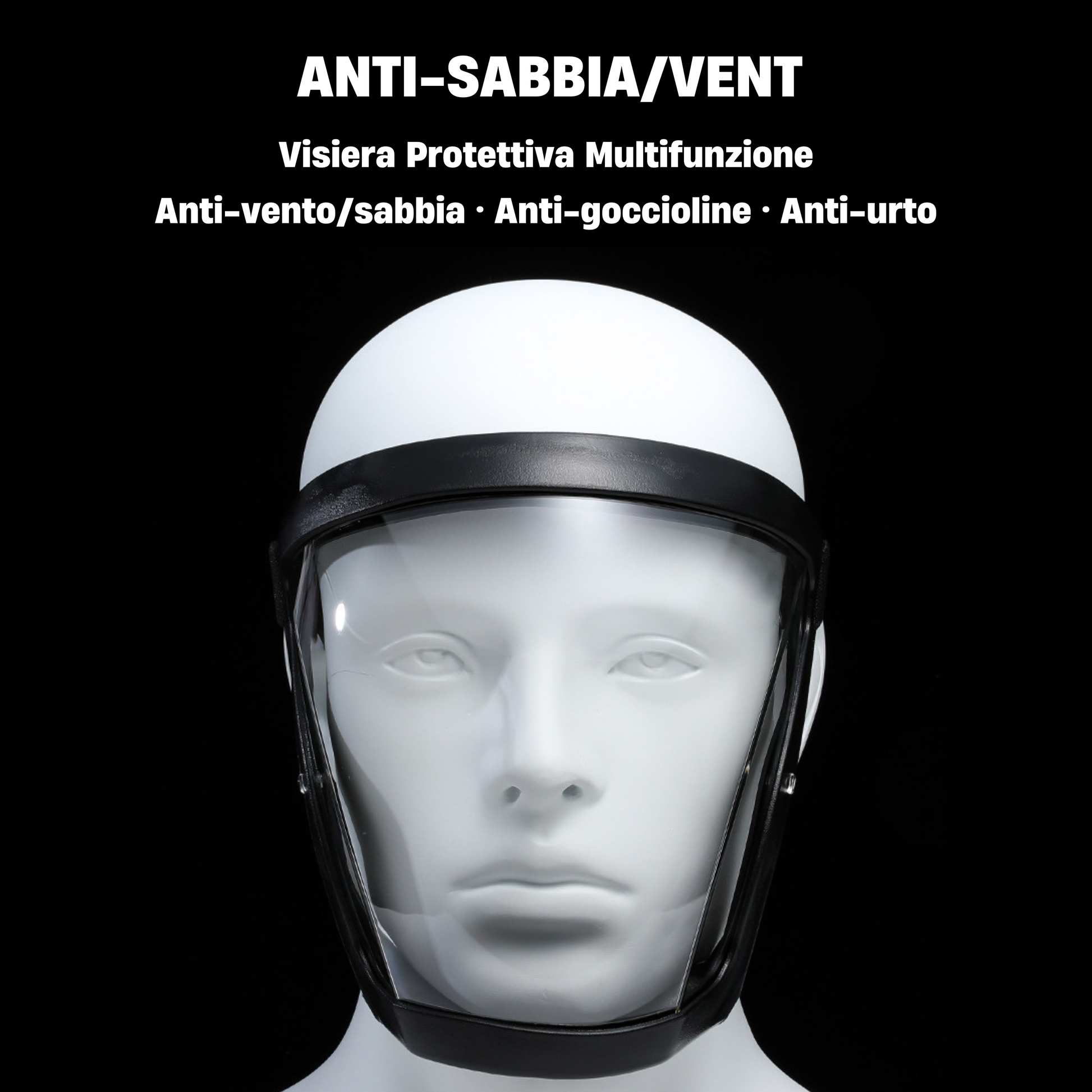 Si tratta di un dispositivo di protezione completo contro particelle dure, oggetti volanti, polvere fine e sudore, offrendo una copertura efficace per il viso e la vista.