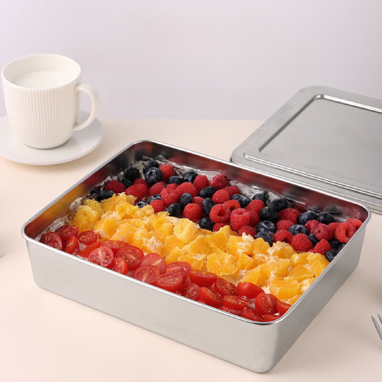 Scatola per la conservazione degli alimenti SUS304, vassoio rettangolare in acciaio inox con coperchio in gomma, sicuro per la salute.(22*15.5*6)