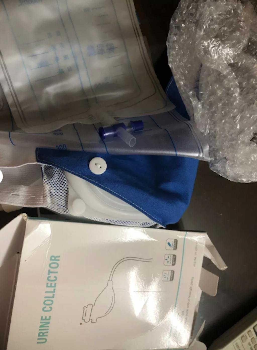 Accessori In Dotazione: S Orinatoio in silicone, biancheria blu, 1.3 metri di tubo in silicone e 2 sacchetti per l'urina