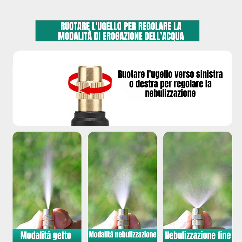 💧 Modalità nebulizzazione e getto – Umidifica, rinfresca o innaffia con nebulizzazione regolabile